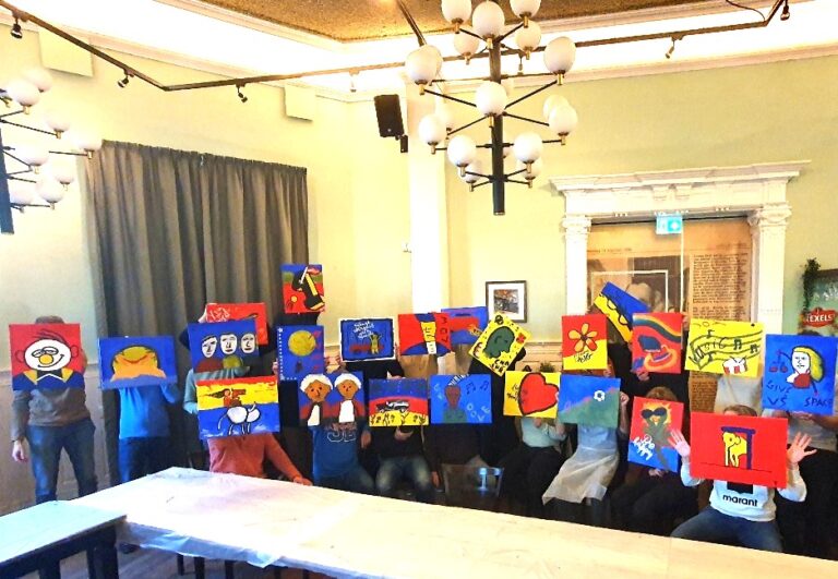 Wij verzorgen de workshop Paint to rock in elke plaats in Nederland, bijvoorbeeld in: Almere, Amersfoort, Amsterdam, Apeldoorn, Arnhem, Breda, Delft, Den Bosch, Den Haag, Deventer, Doetinchem, Eindhoven, Groningen, Haarlem, Hilversum, Leeuwarden, Leiden, Lelystad, Nijmegen, Rotterdam, Scheveningen, Tilburg, Utrecht en Zwolle. Staat jouw plaatsnaam er niet bij? Klik dan in het informatieblok ‘Kies een plaats’, die je naast de lila informatiebutton vindt, onderaan voor ‘Een andere plaats’ en geef bij je informatieaanvraag aan in welke plaats je dit uitje wil doen.